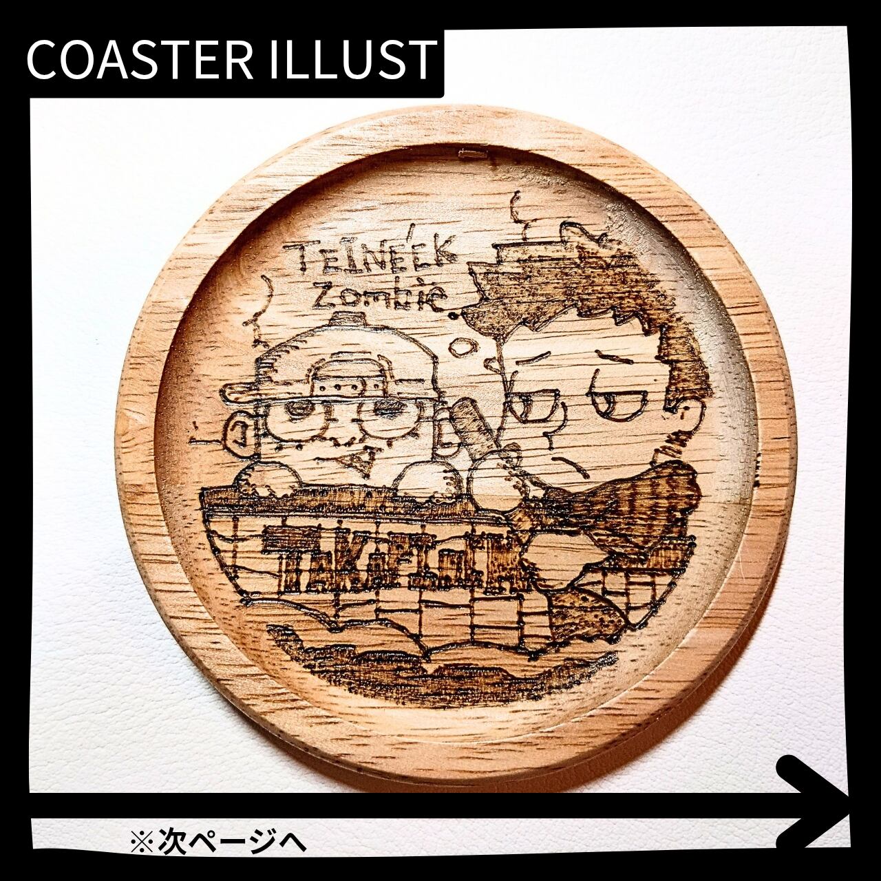 木のコースターに電熱ペンで描きました。