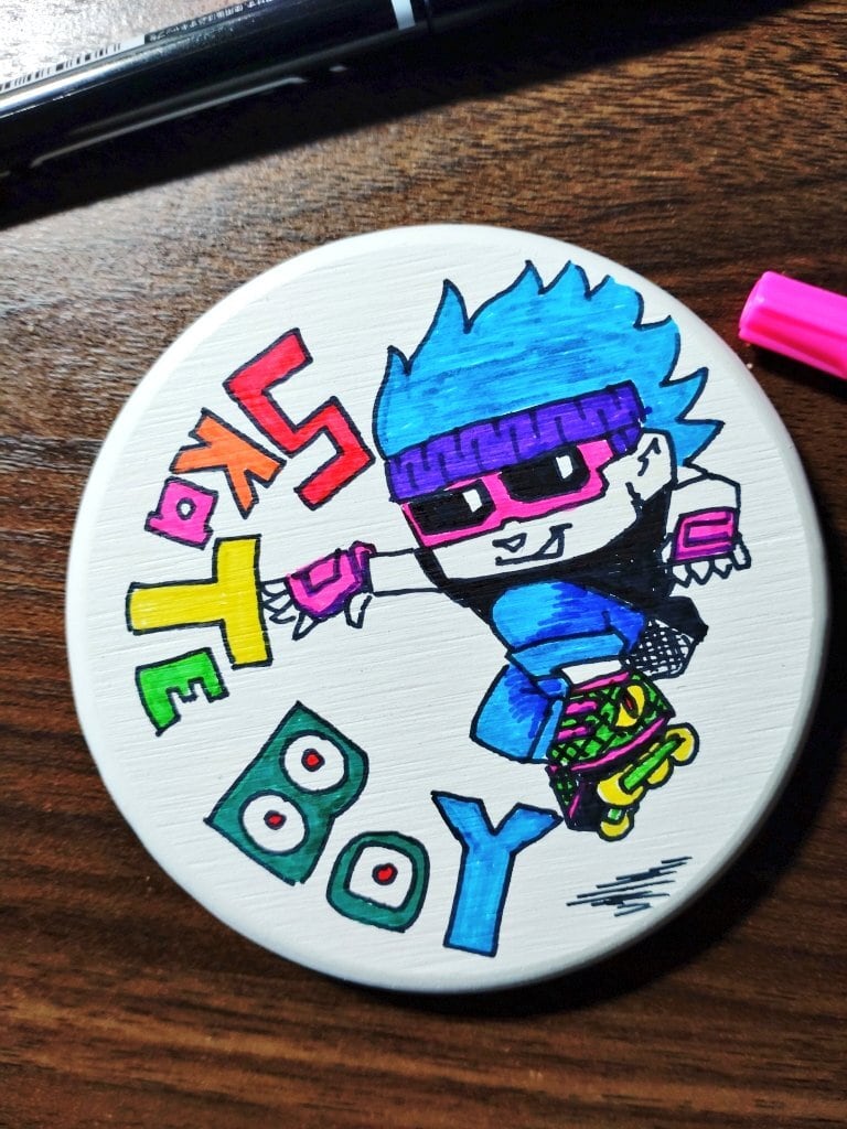珪藻土コースターに、オリジナルイラストを描きました。
