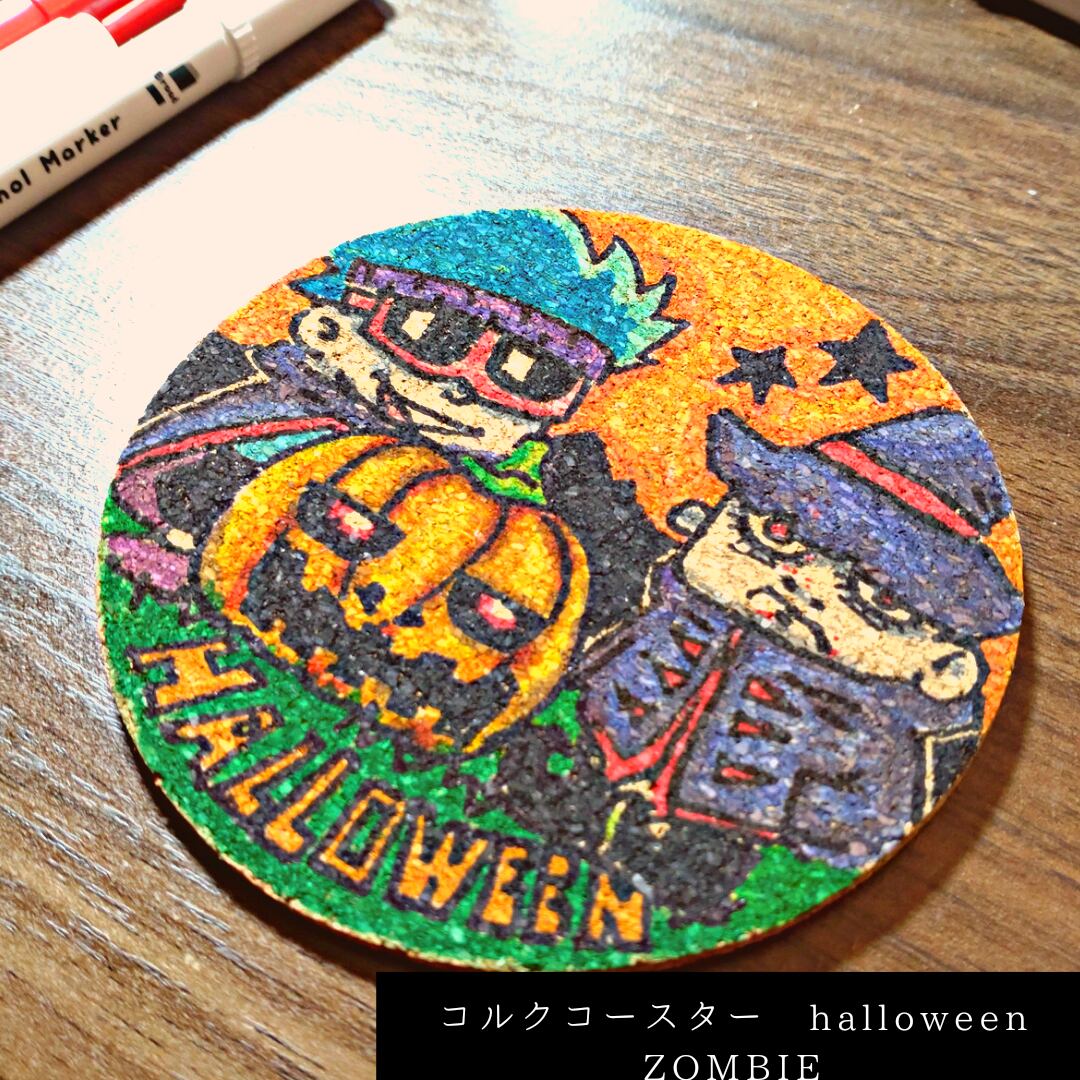 #イラスト #コースター #コースターイラスト #手描きイラスト #オリジナルイラスト #コルクコースター #コルクコースターに描いてみた #zombie #ゾンビ #takapinch