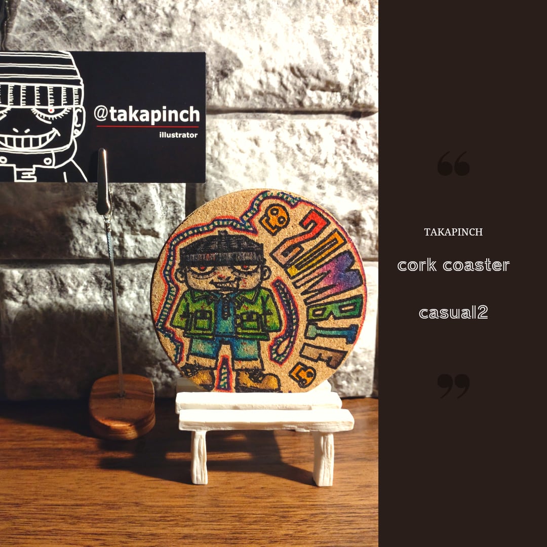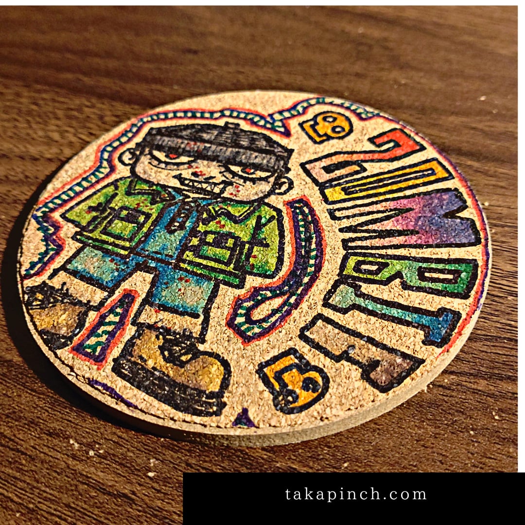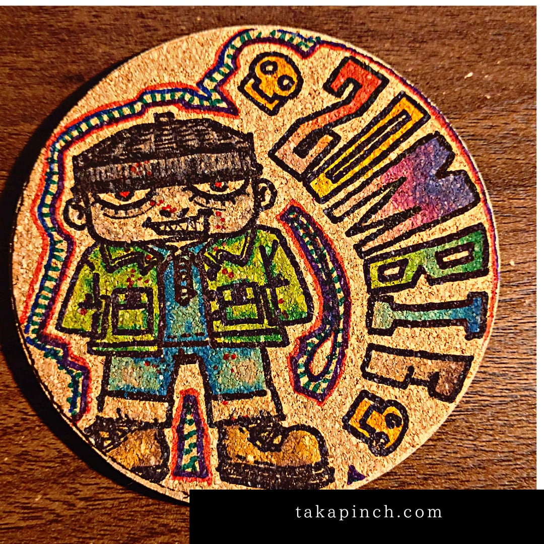 #イラスト #コースター #コースターイラスト #手描きイラスト #オリジナルイラスト #コルクコースター #コルクコースターに描いてみた #ZOMBIE #ゾンビ #takapinch