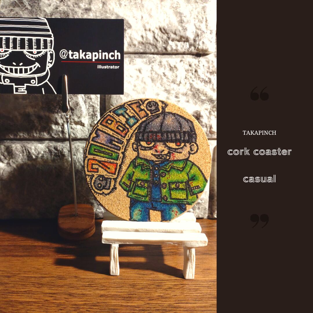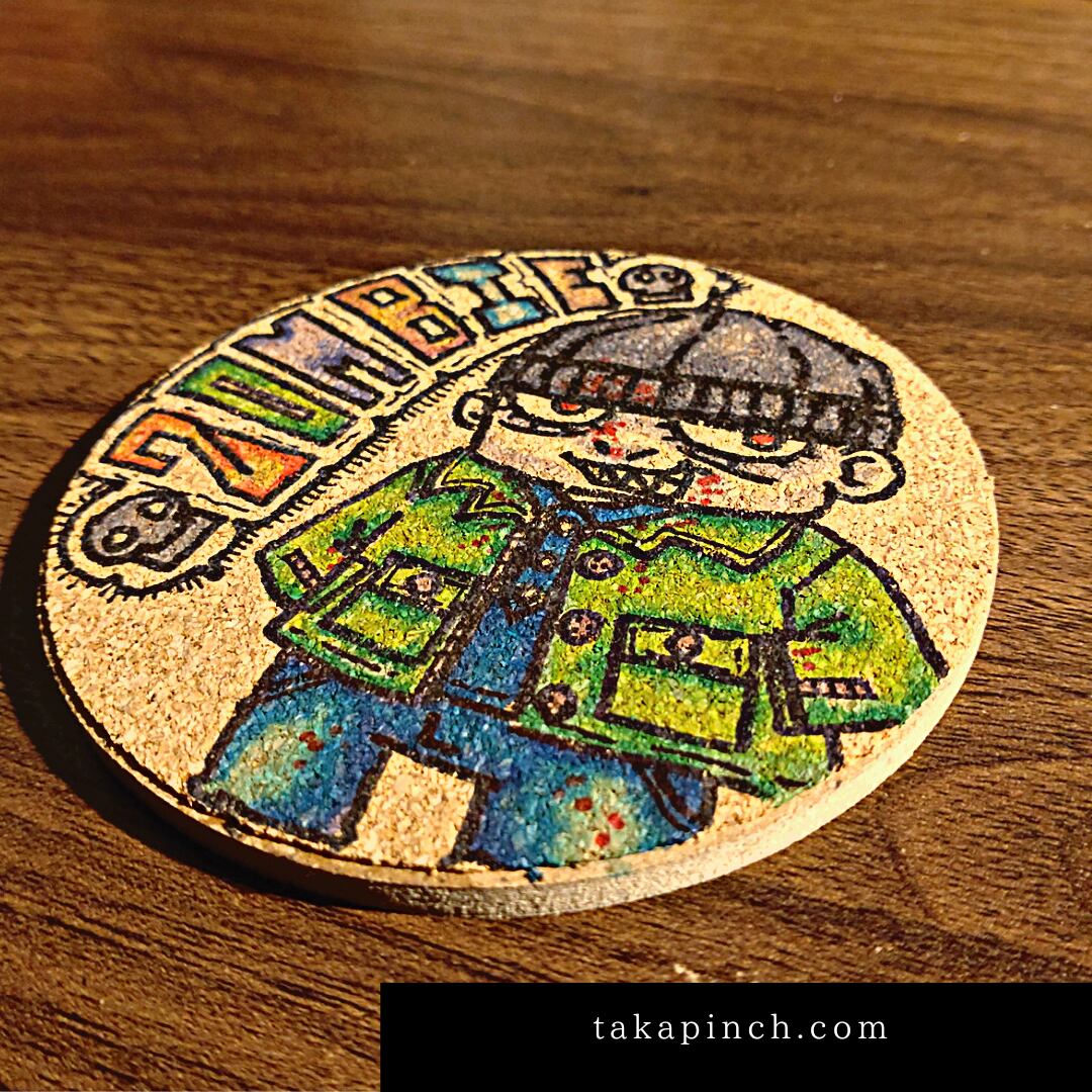 #イラスト #コースター #コースターイラスト #手描きイラスト #オリジナルイラスト #コルクコースター #コルクコースターに描いてみた #ZOMBIE #ゾンビ #takapinch