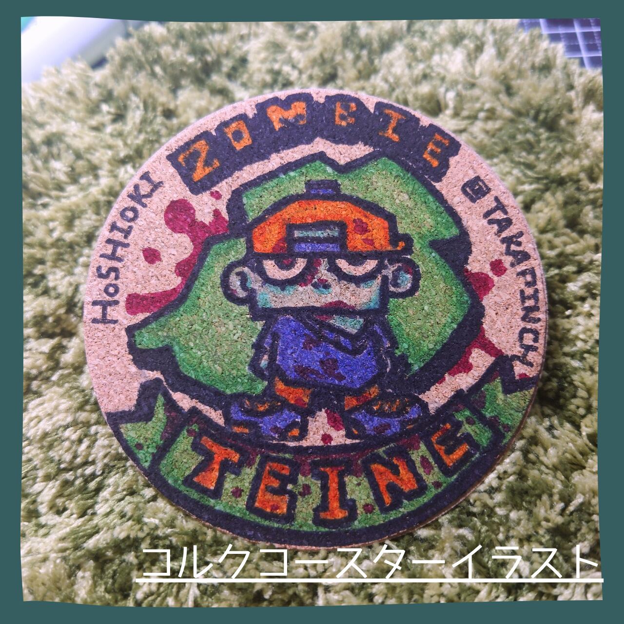 コルクコースターへ描きました。
