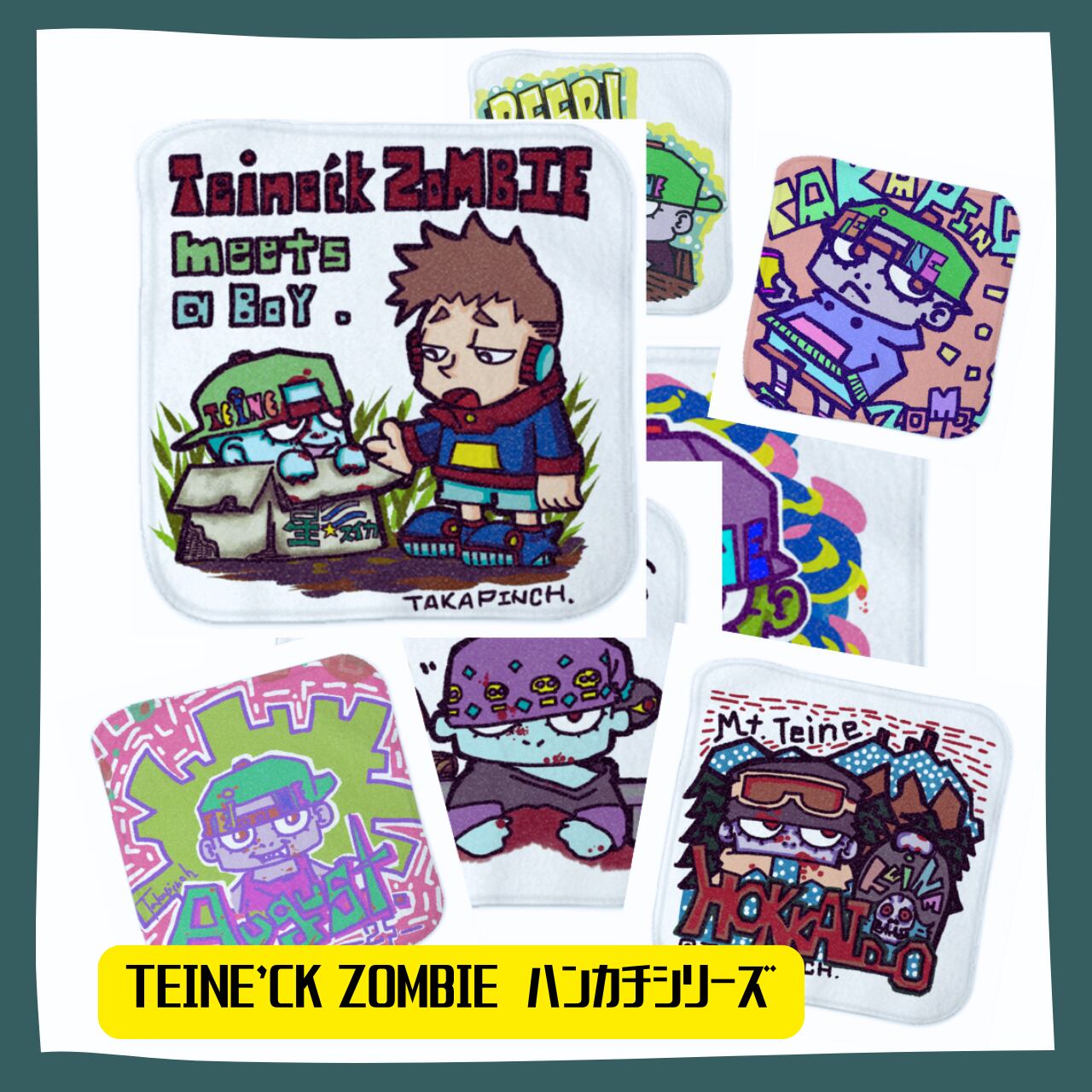 ピザを食べるFRANKENのイラストをプリントしたハンカチです